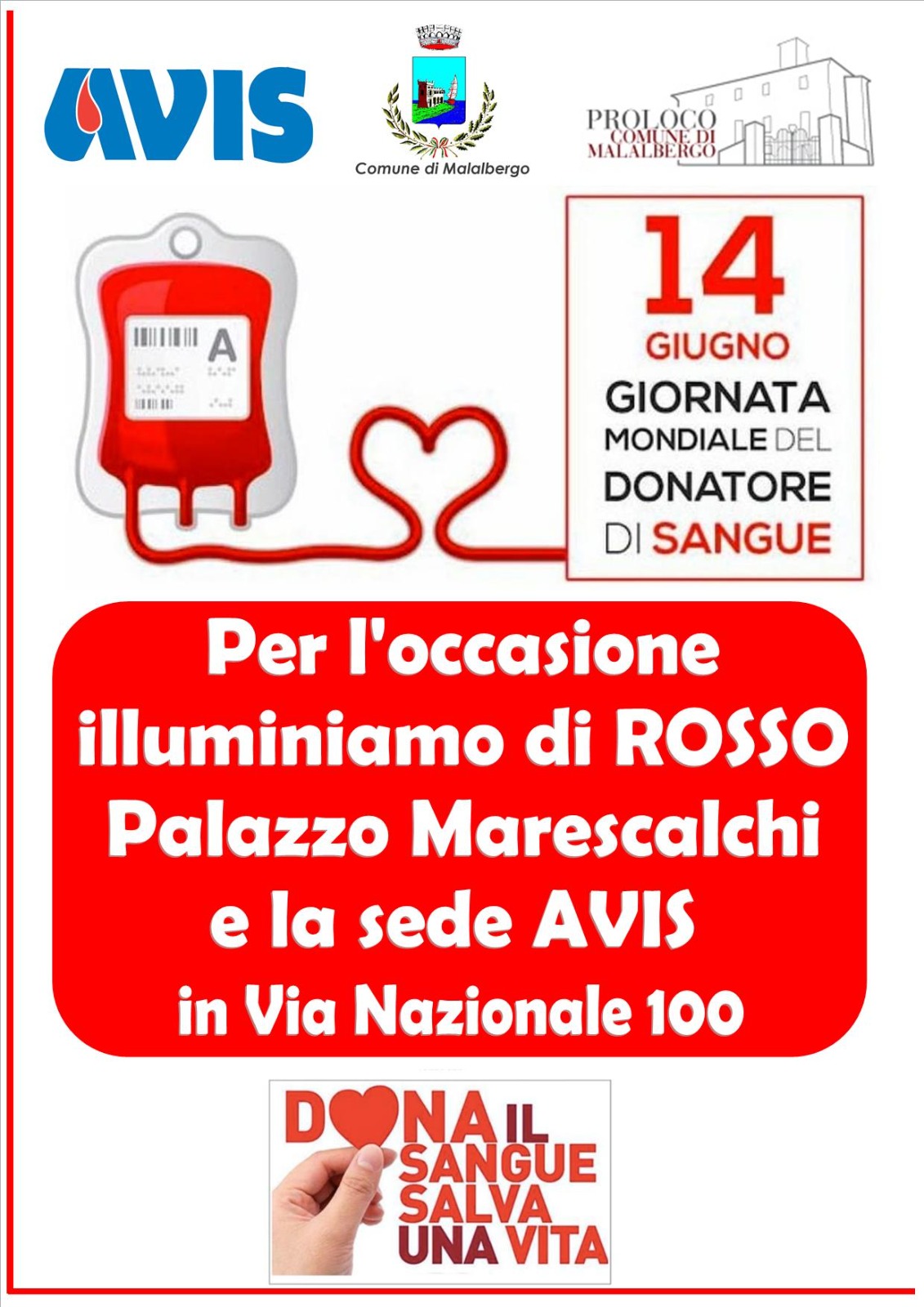 Sabato e domenica sera sede Avis di Altedo e Palazzo Marescalchi di Malalbergo illuminati in rosso!