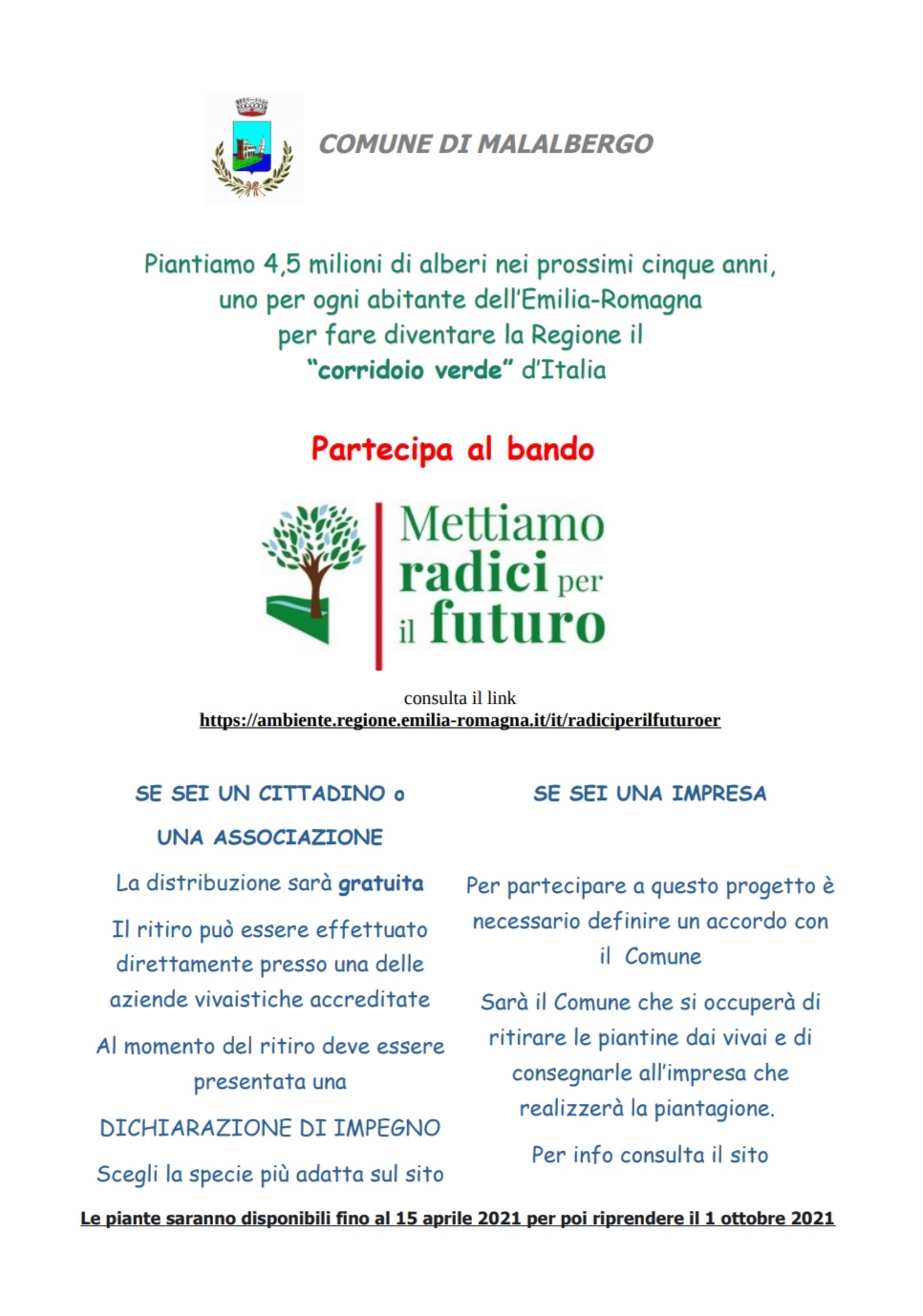 Malalbergo aderisce al progetto regionale, per raggiungere la piantumazione di 4.5 milioni di alberi in Regione!