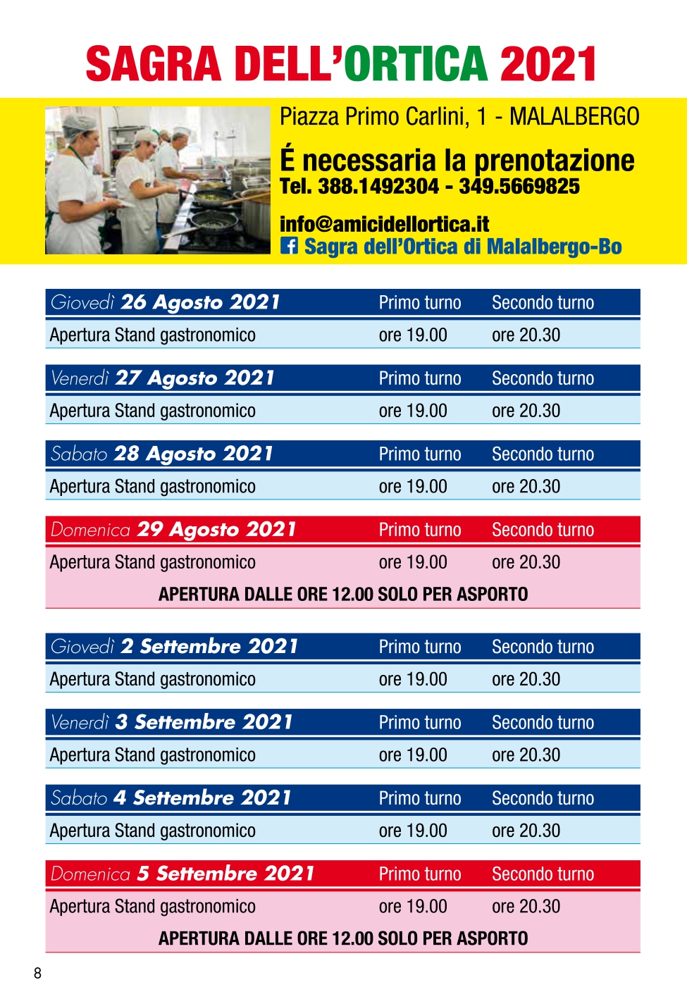 Edizioni serali con prenotazione ai n. 388 1492304 – 349 5669825 nelle fasce orarie 19.00-20.30 e 20.30 in poi.