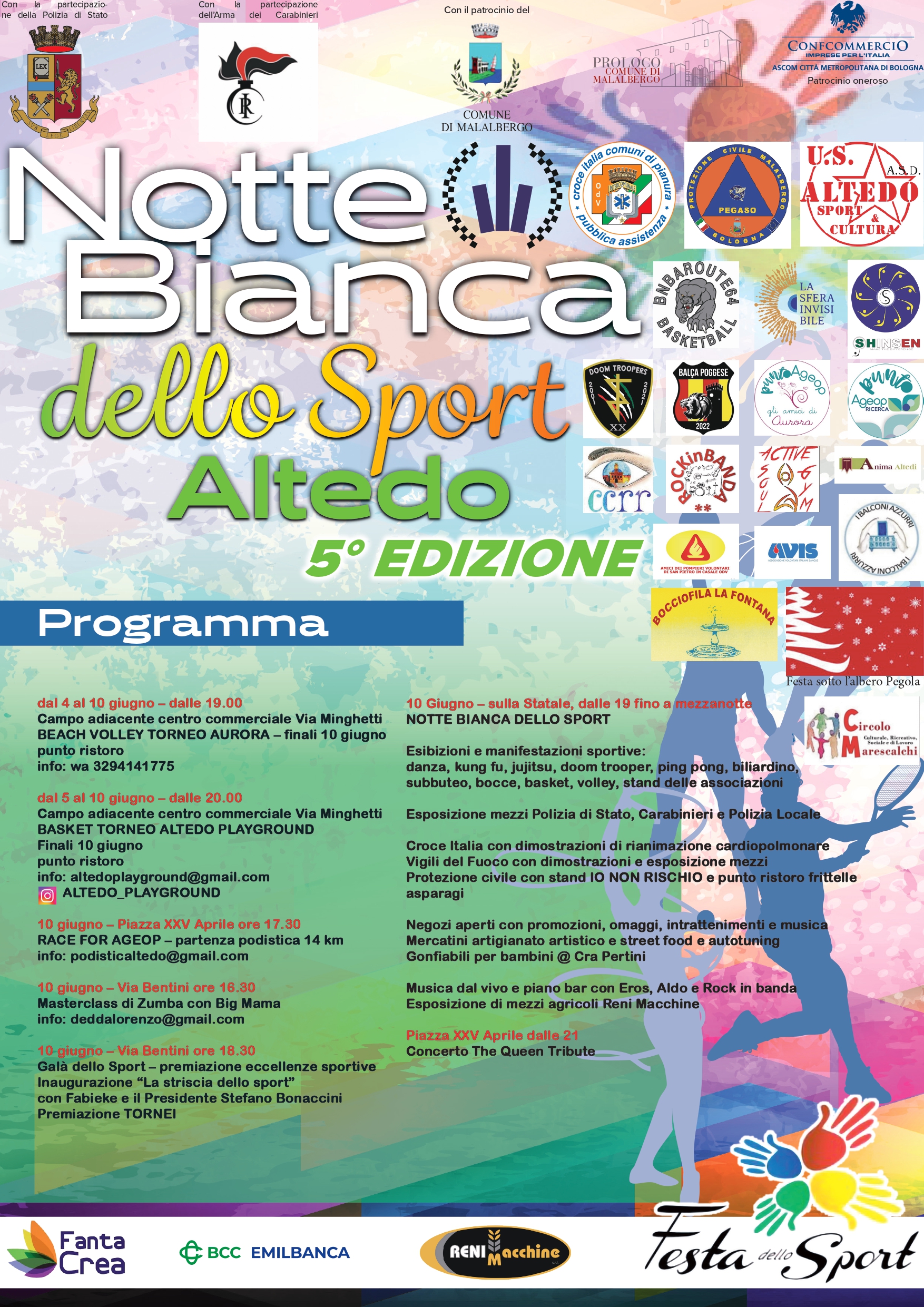 Torna la Festa dello Sport, giunta alla sua quinta edizione e organizzata dalle associazioni sportive del territorio e dalla Proloco di Malalbergo, con la collaborazione dei commercianti e la partecipazione delle associazioni locali.