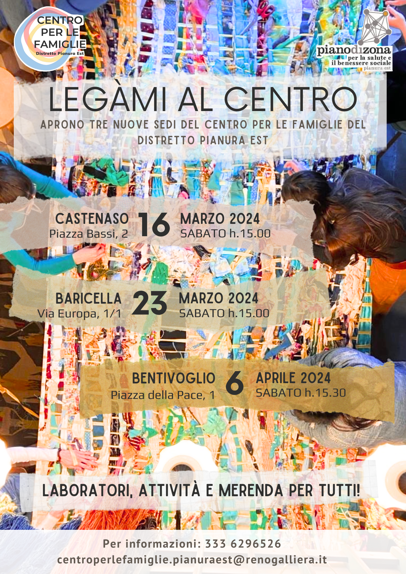 Le giornate saranno l'occasione per conoscerci, ri-conoscerci e tessere nuovi legami e fili di relazione, e saranno accompagnate da attività, laboratori rivolti a tutte le età.