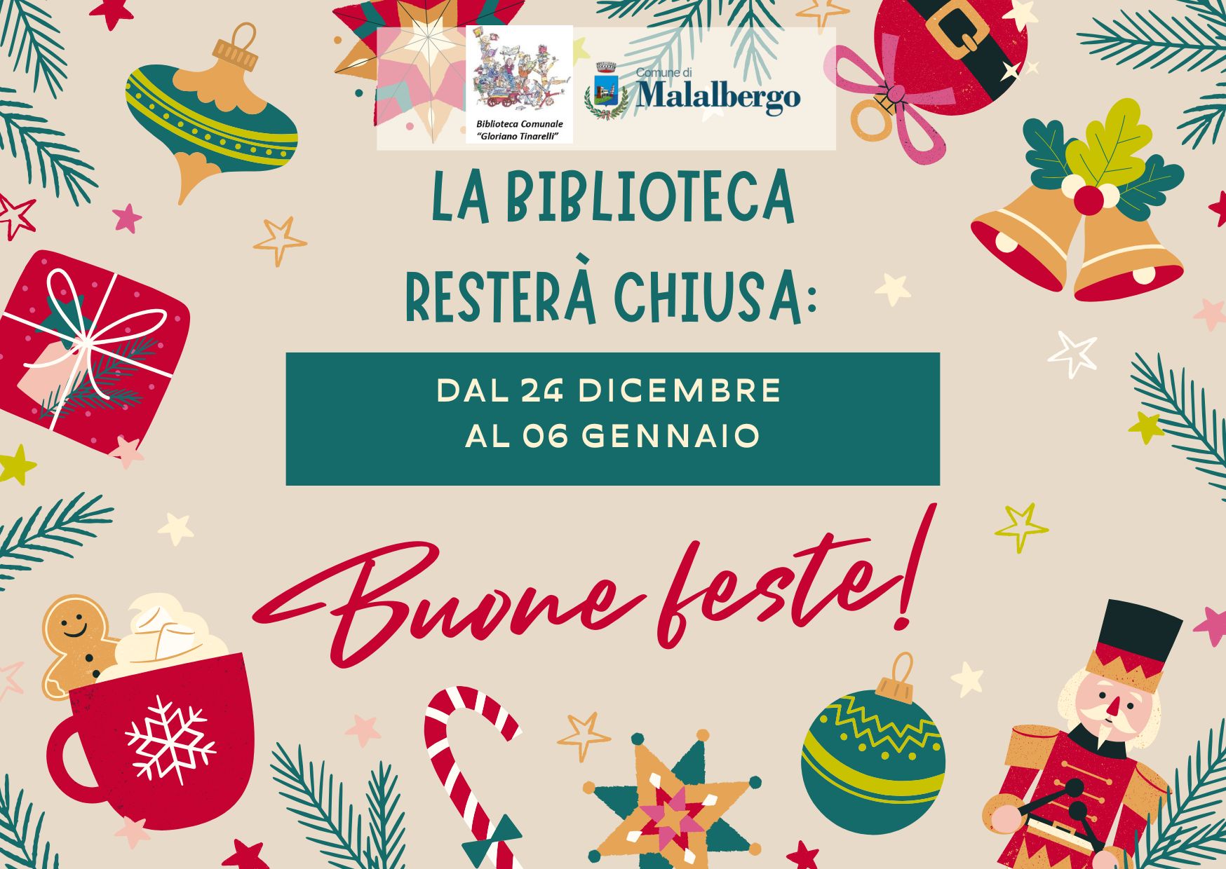 La biblioteca comunale "Gloriano Tinarelli" resterà chiusa dal 24 dicembre 2025 al 6 Gennaio 2026 compresi.