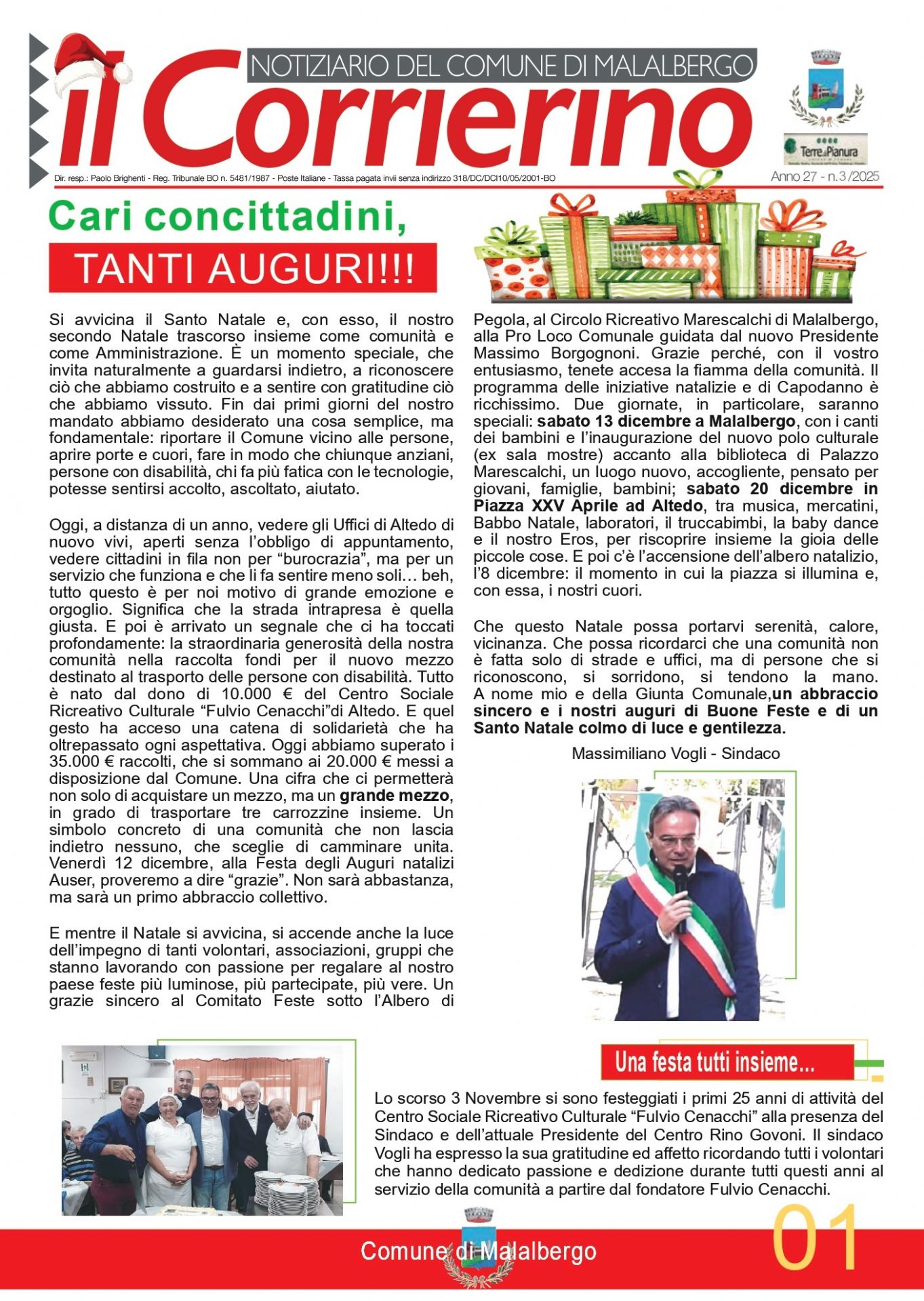 Online il nuovo numero de "Il Corrierino", notiziario del Comune di Malalbergo N.3/2025.