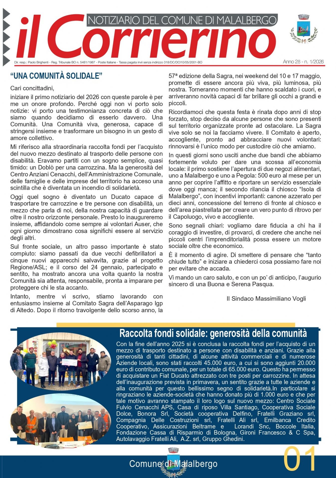 Online il nuovo numero de "Il Corrierino", notiziario del Comune di Malalbergo N.1/2026.