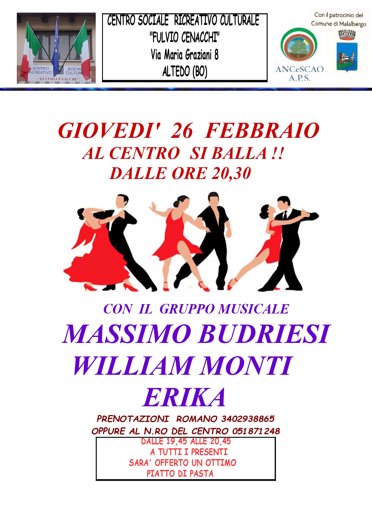 Al Centro si balla! Serata danzante con il Gruppo Musicale Massimo Budriesi, William Monti e Erika