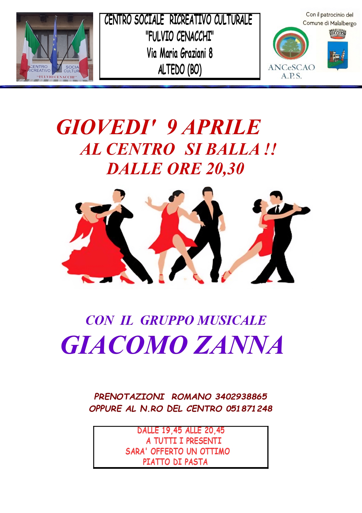 Al Centro si balla! Serata danzante con il Gruppo Musicale Giacomo Zanna.