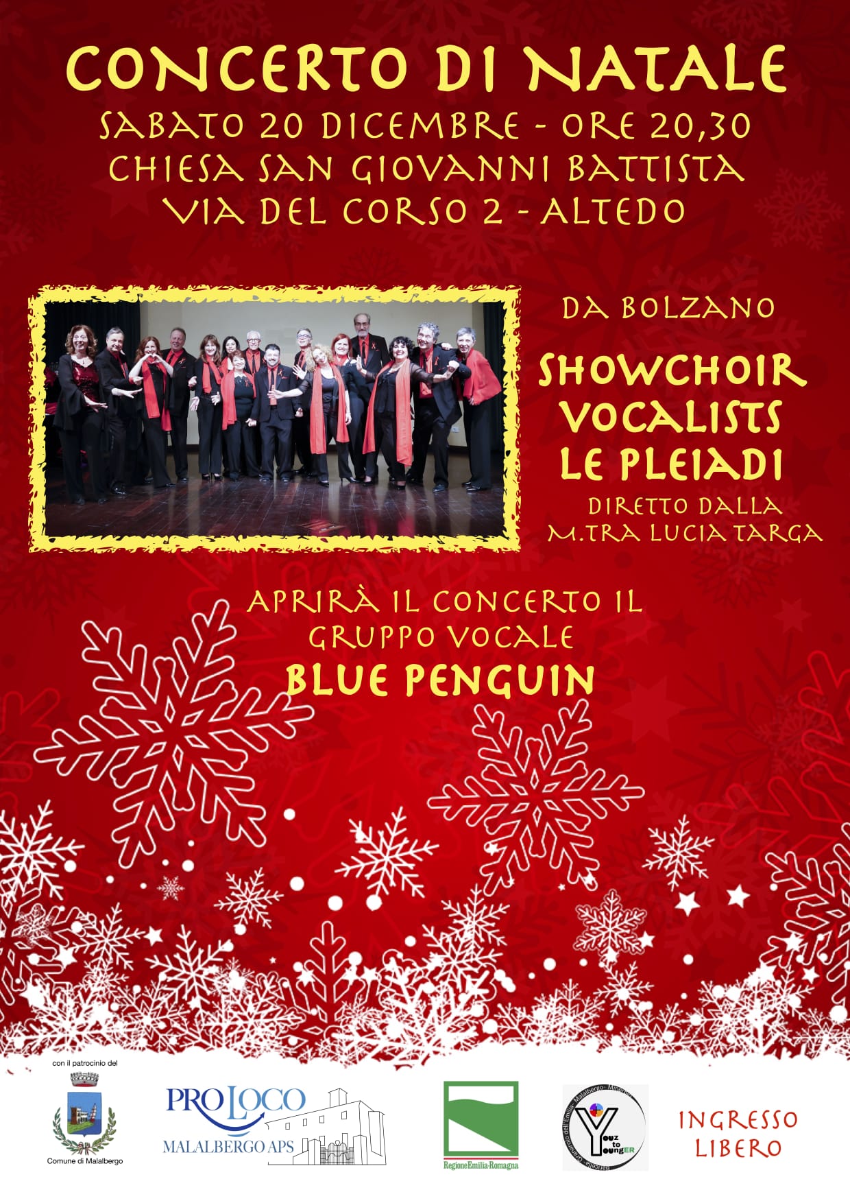 Concerto di Natale Showchoir Vocalists Le Pleiadi, aprirà il concerto il gruppo musicale Blue Penguin.