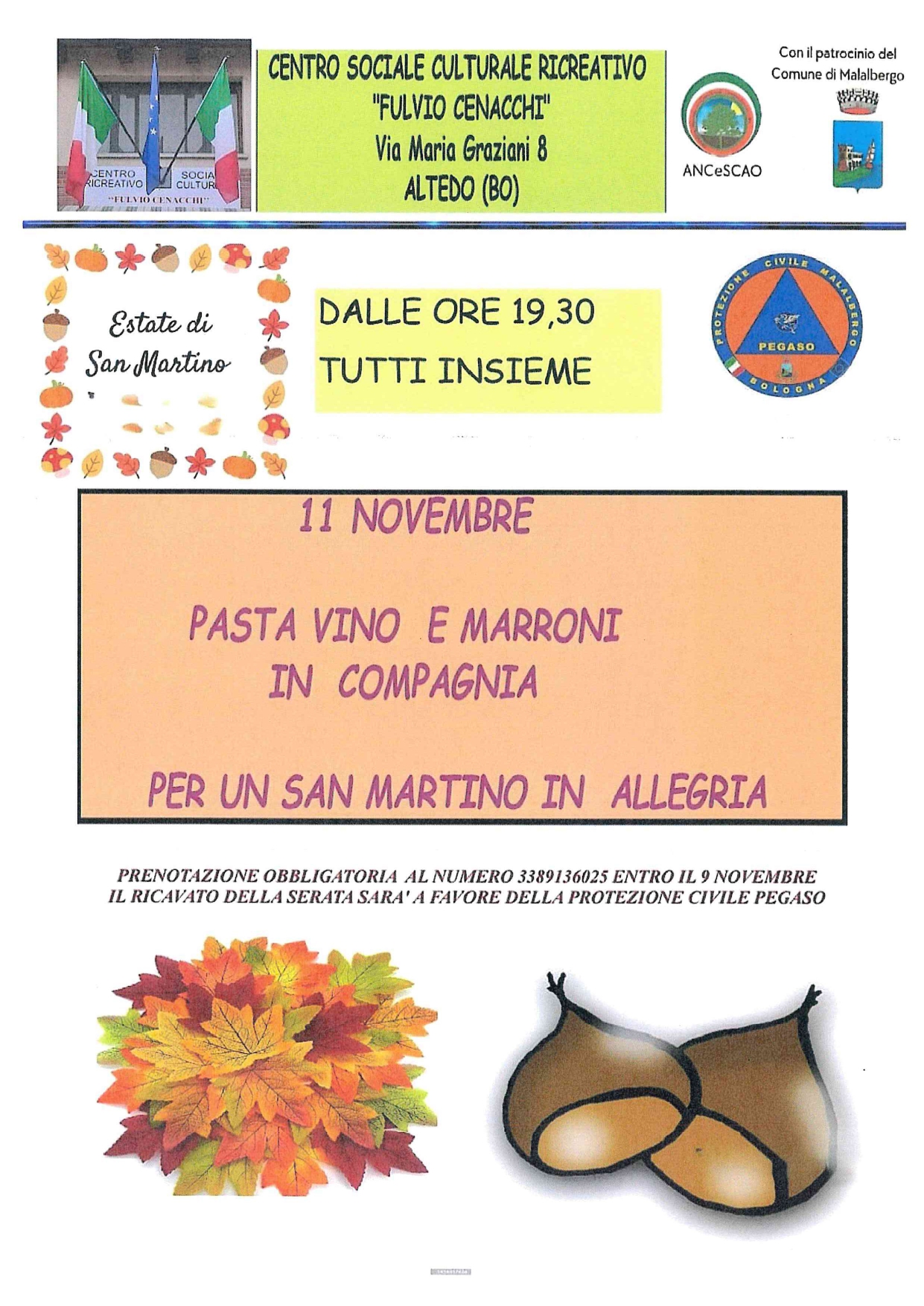 Pasta, vino e marroni per 𝐬𝐨𝐬𝐭𝐞𝐧𝐞𝐫𝐞 𝐞 𝐚𝐢𝐮𝐭𝐚𝐫𝐞 i Volontari Protezione Civile Pegaso - Malalbergo