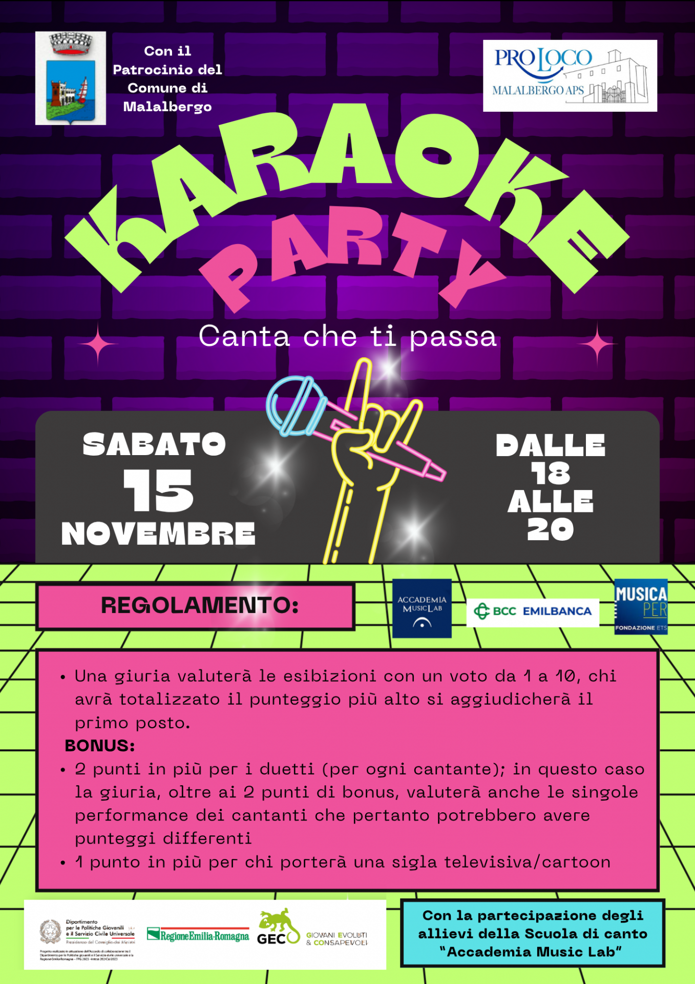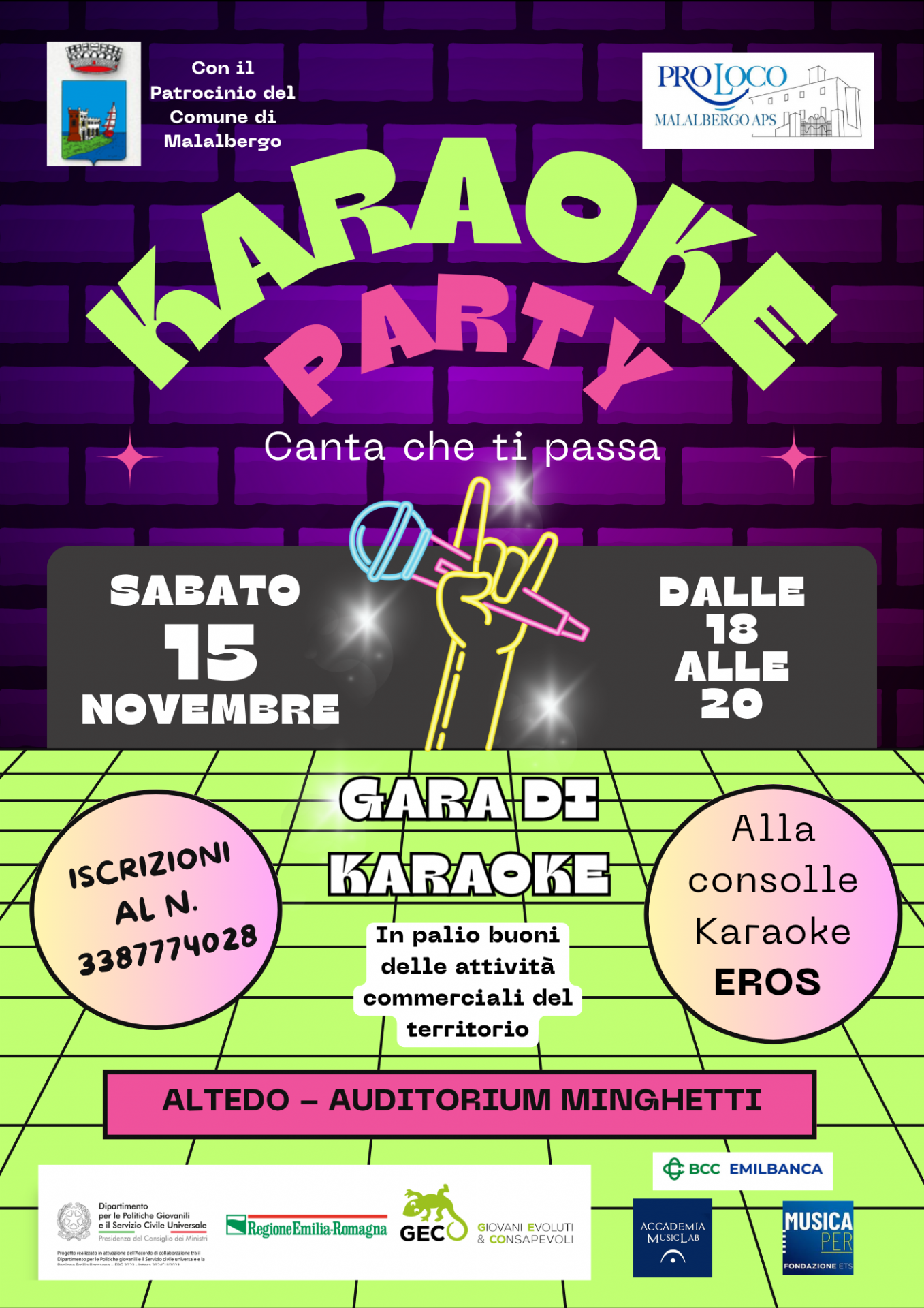 Allora non puoi mancare al Karaoke Party che animerà l’Auditorium Minghetti di Altedo sabato 15 novembre, dalle 18 alle 20!